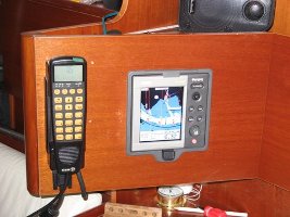 Gps geeft de plaats aan waar we zijn en de marifoon zend en ontvangt goed.
